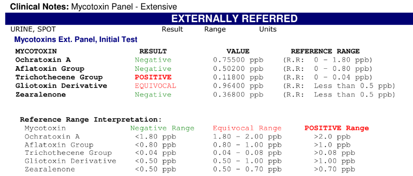 Here are my results. Positive for Trichothecene and Gliotoxin mycotoxins. I have since started treatment on this, but I expect it to be a long road. If you have any questions in regards to mould testing in Australia, reach out to Nutripath.com.au